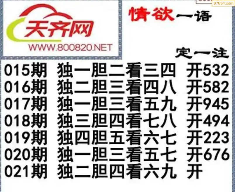 福彩3d26年021期字谜传说一句定三码