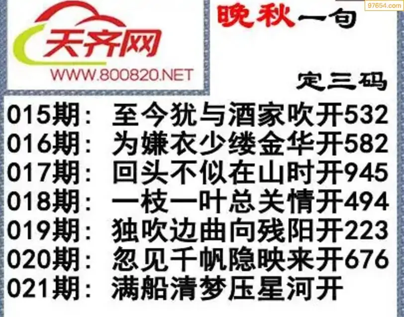 021期3d福彩今日晚秋字谜一句定三码