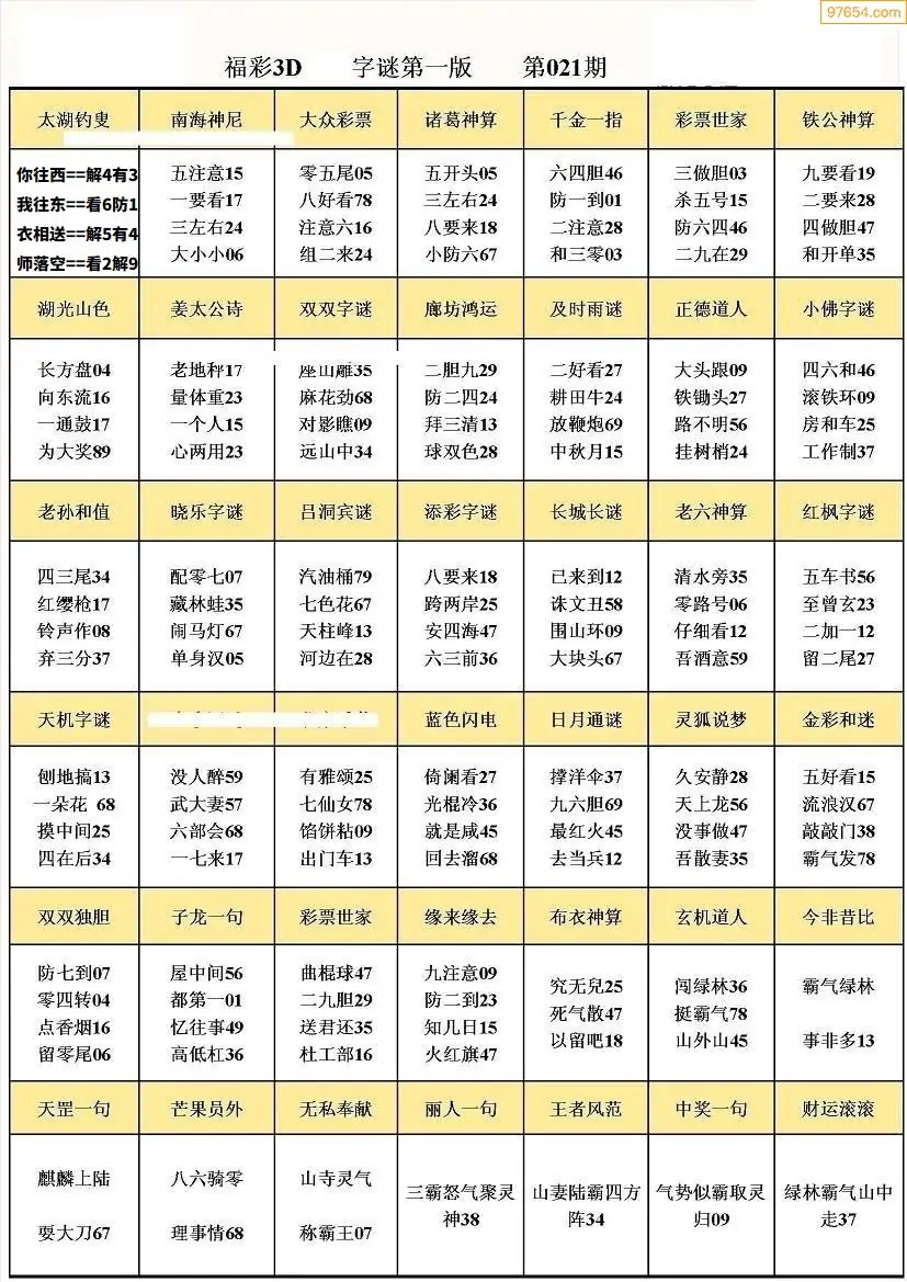 (3)2026021期3D预测总汇全图_福彩3d图谜字谜总汇