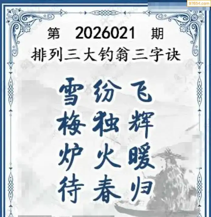 26年体彩p3第021期大钓翁三字诀