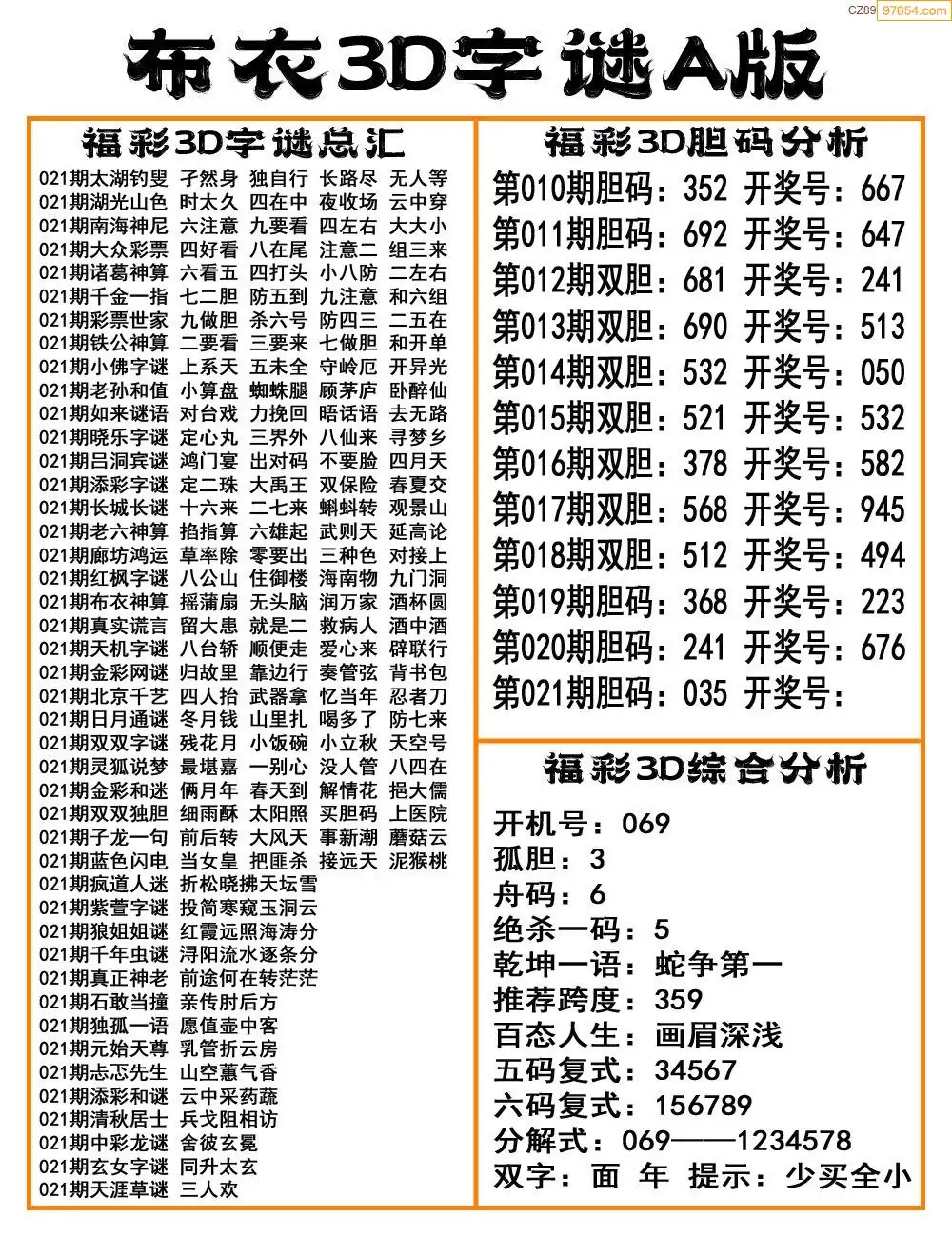 福彩26021期布衣3d字谜ab