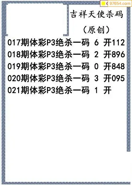 26年021期吉祥天使今日杀码图谜