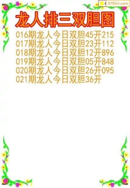 26021期龙人排列3双胆图