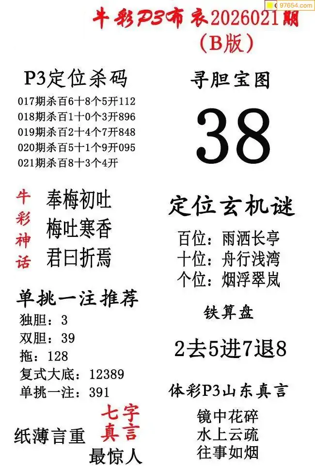 2026年021期北盟天机图+p3仙机图谜 _P3图谜二版