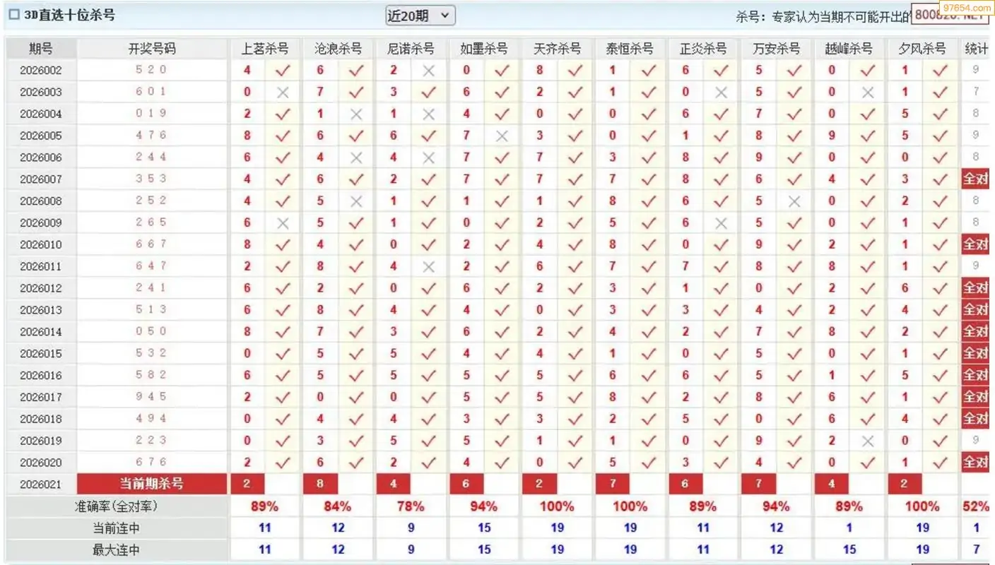福彩3D26年021期非诚勿扰杀两号 3连中