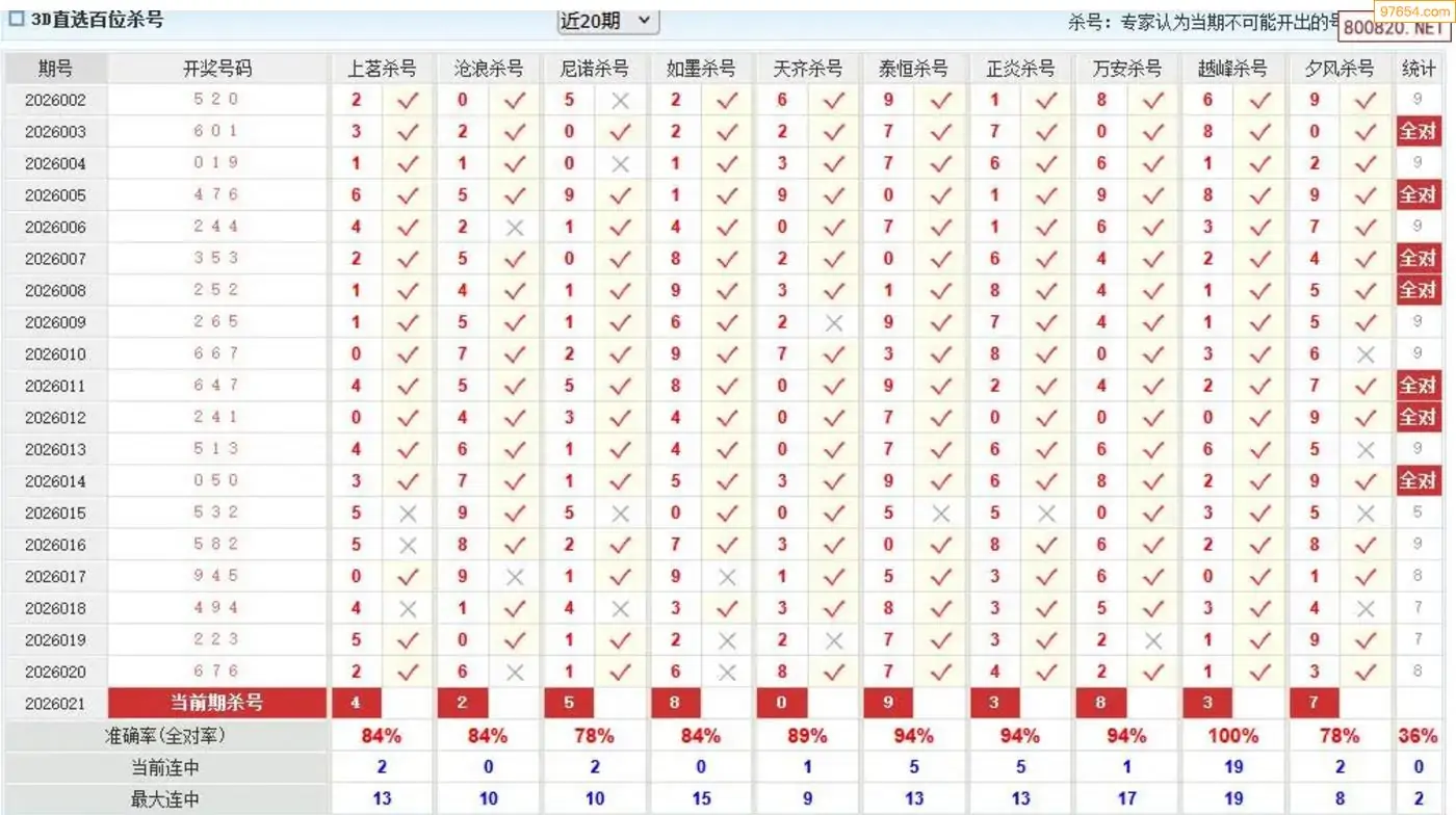 秋风过耳021期3D杀号 13连中