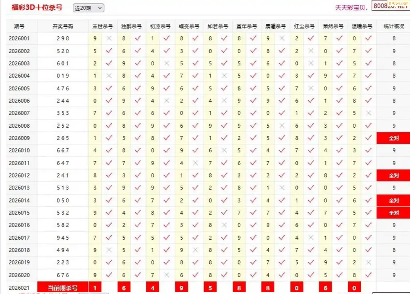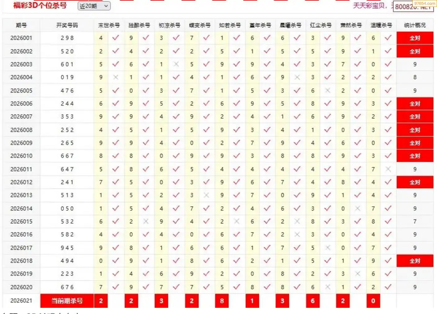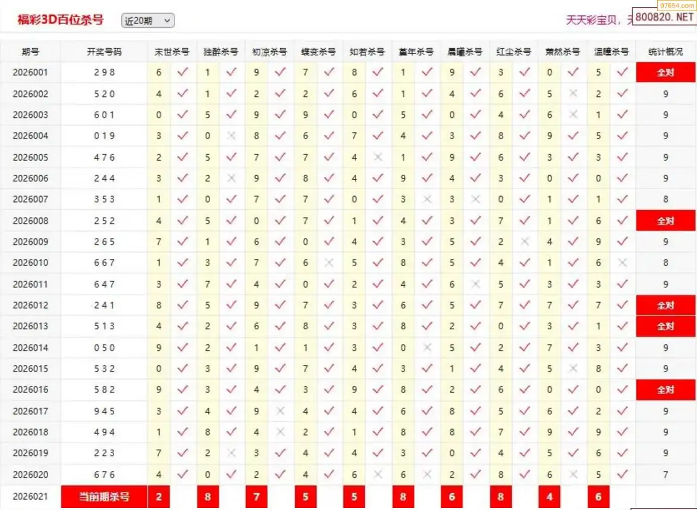 福彩3D26年022期非诚勿扰杀两号 4连中