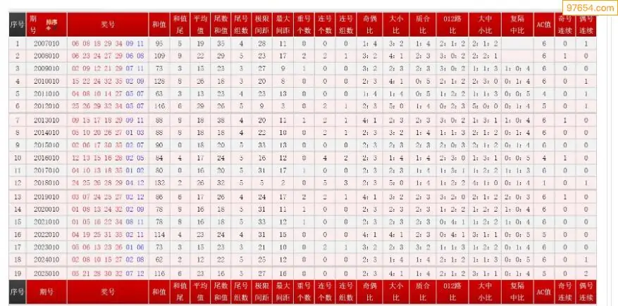 010期大乐透历史同期图表+走势图