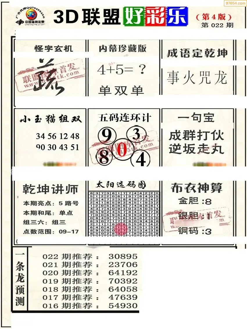 26年022期联盟好彩乐直通车4