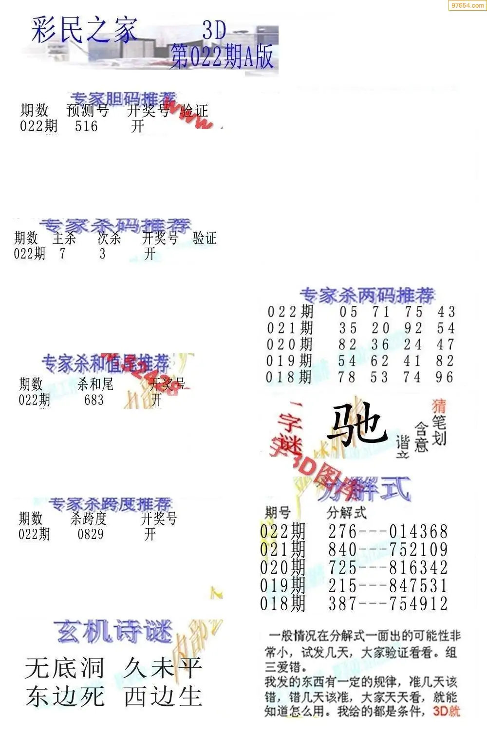 26022期3D彩民各类资料A版