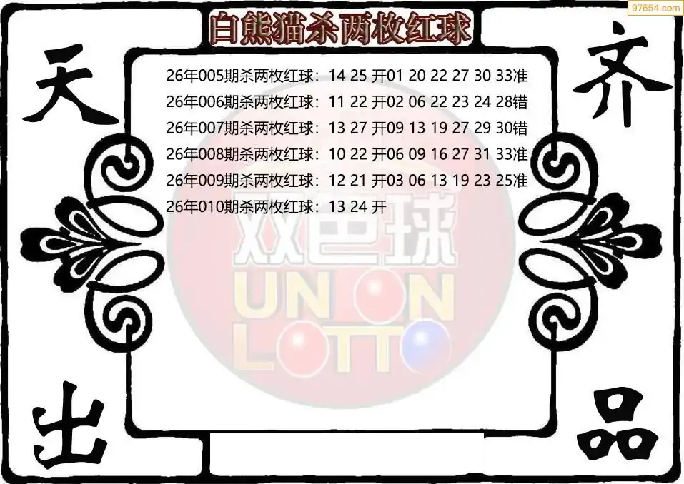 26年双色球010期白熊猫杀两枚红球图谜