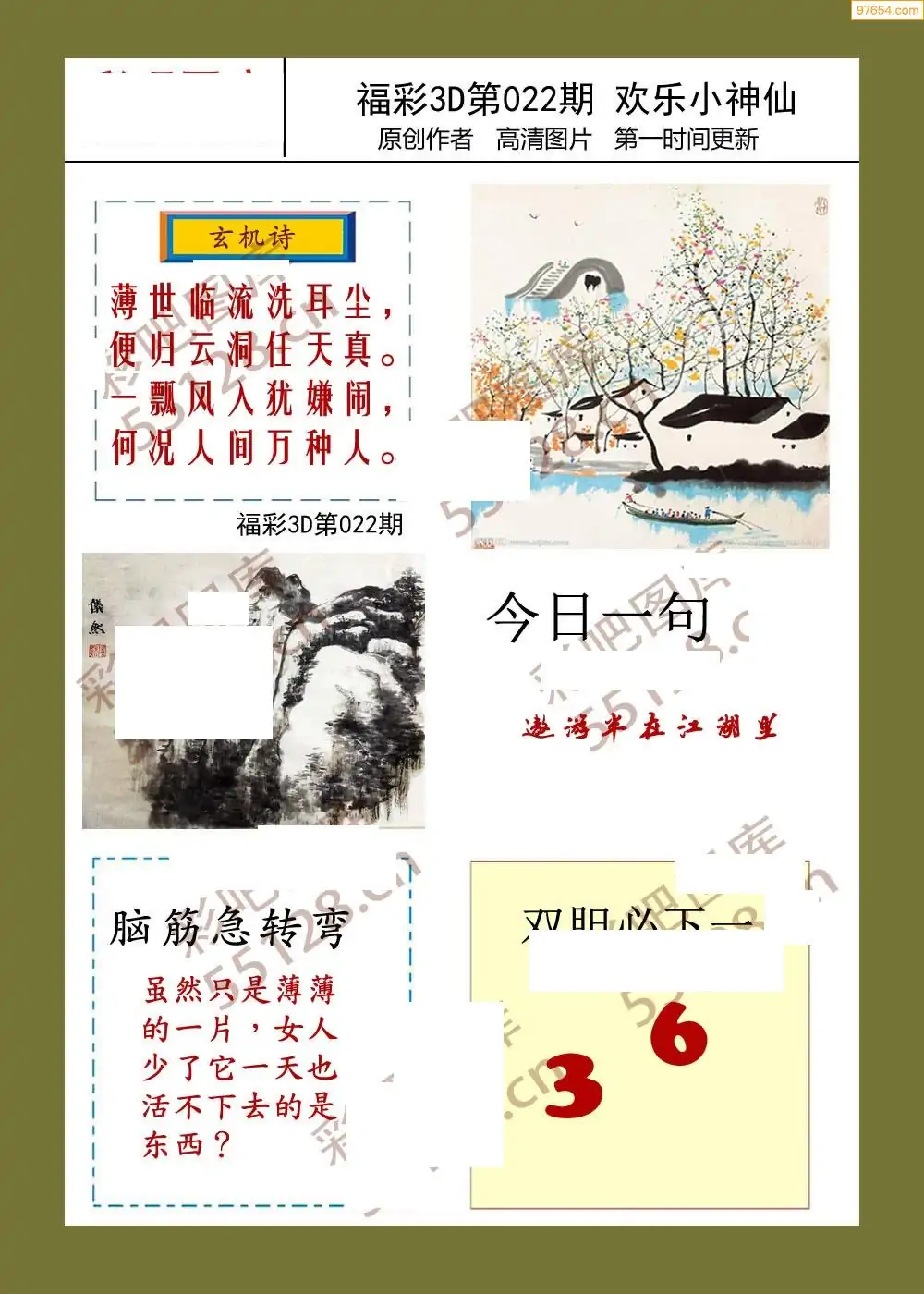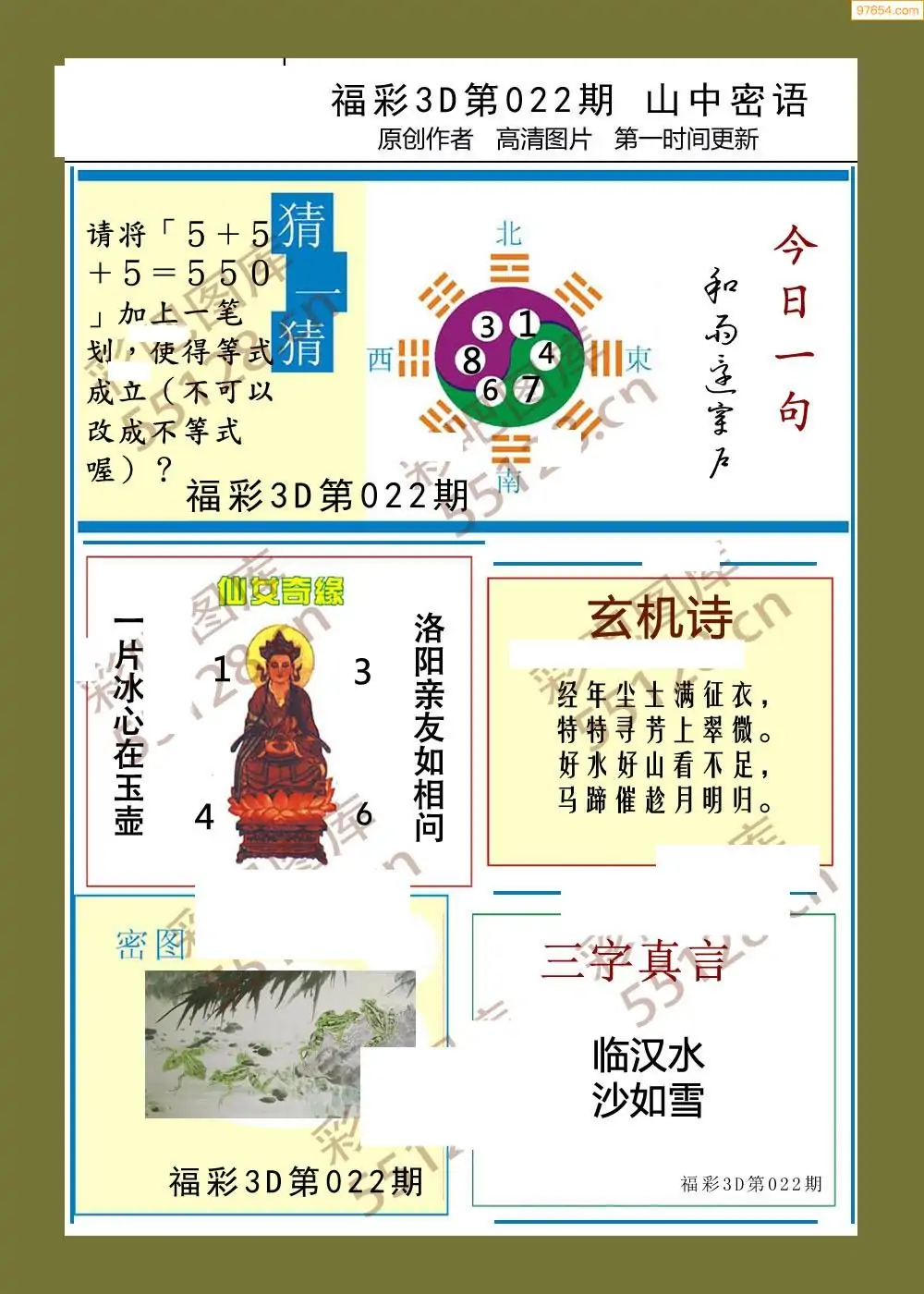 福彩3D26022期蓝仙子一句定三码图谜