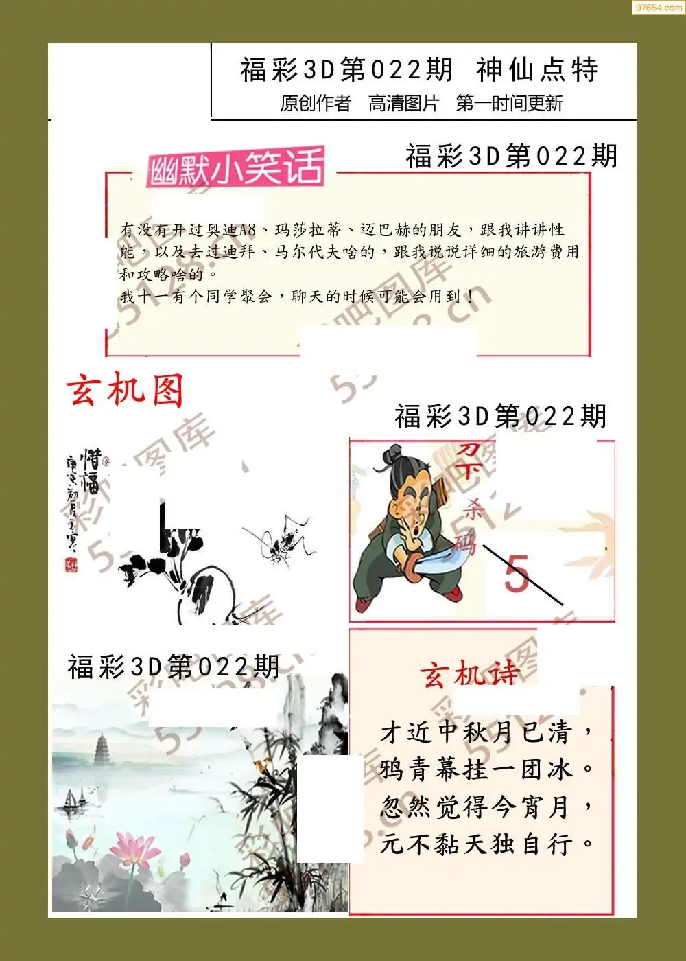 022期鑫马分析+杀手报3d图谜