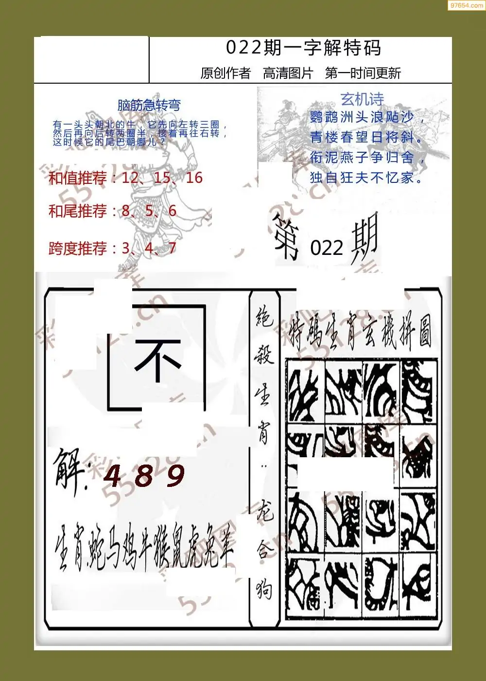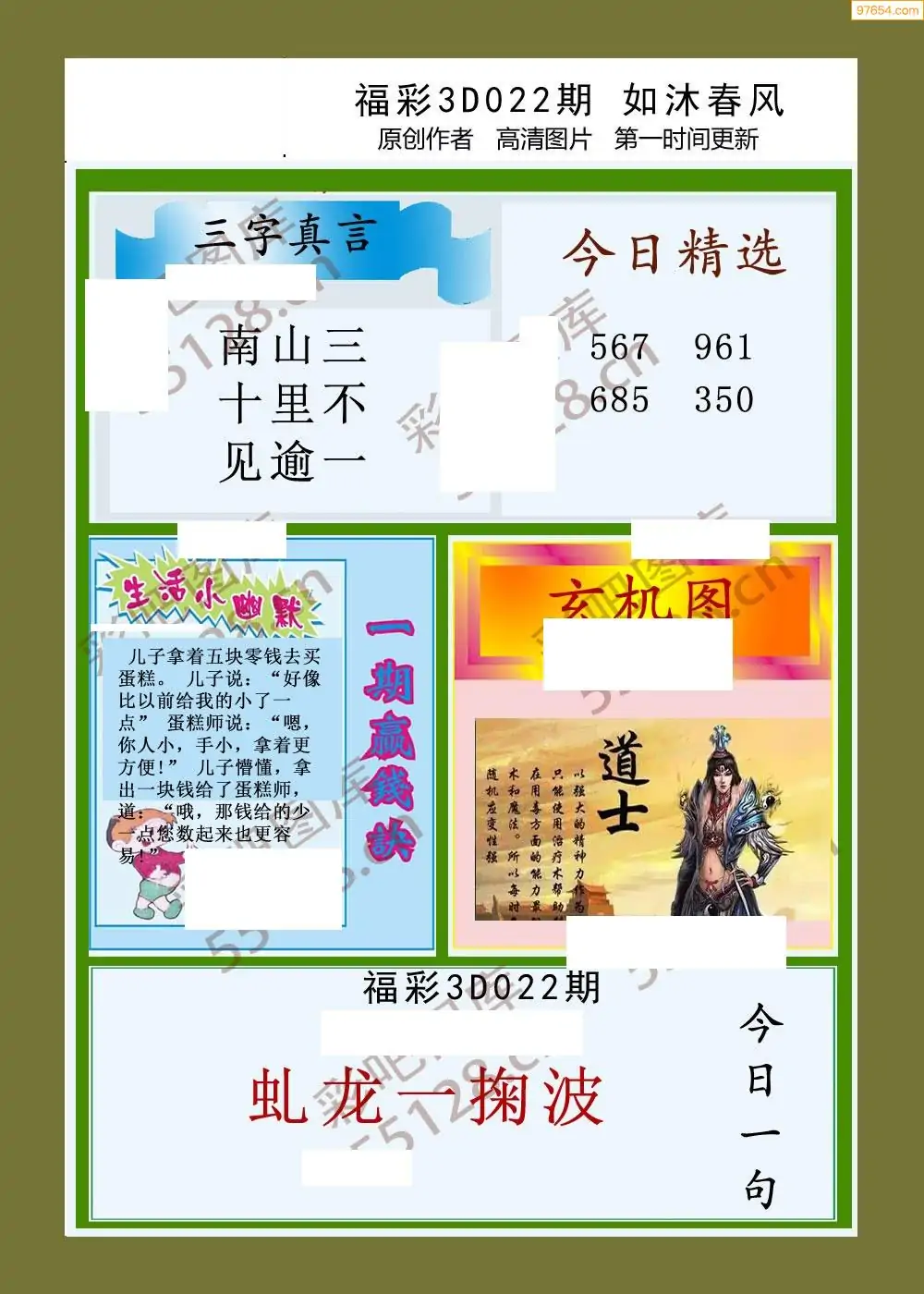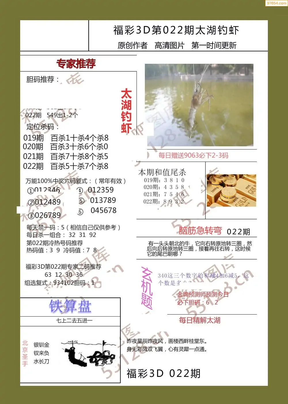 福彩3D022期天牛彩吧套图整合总汇