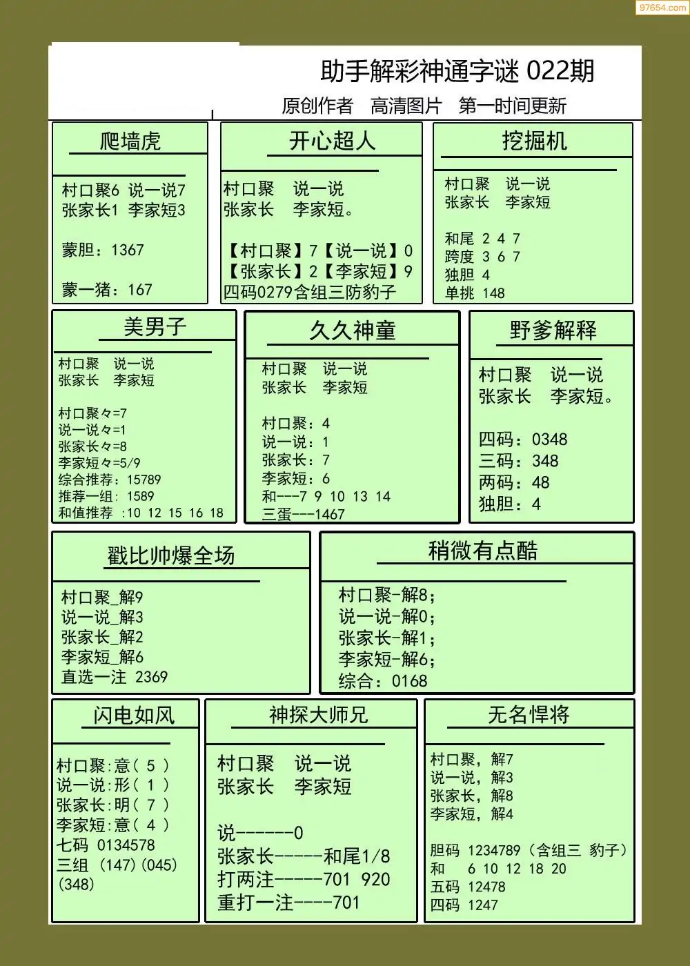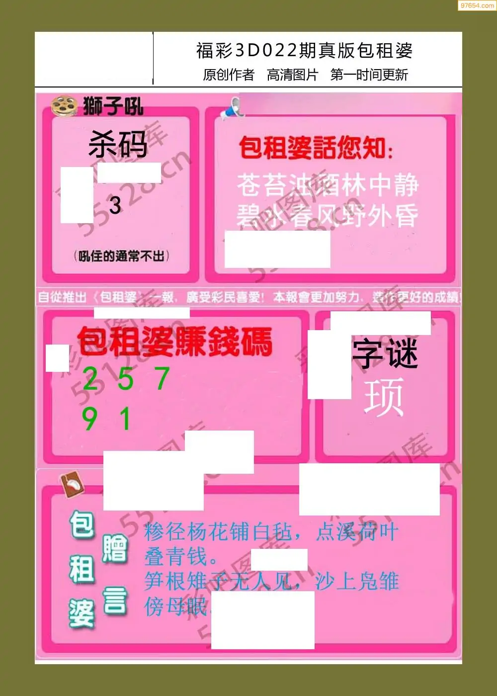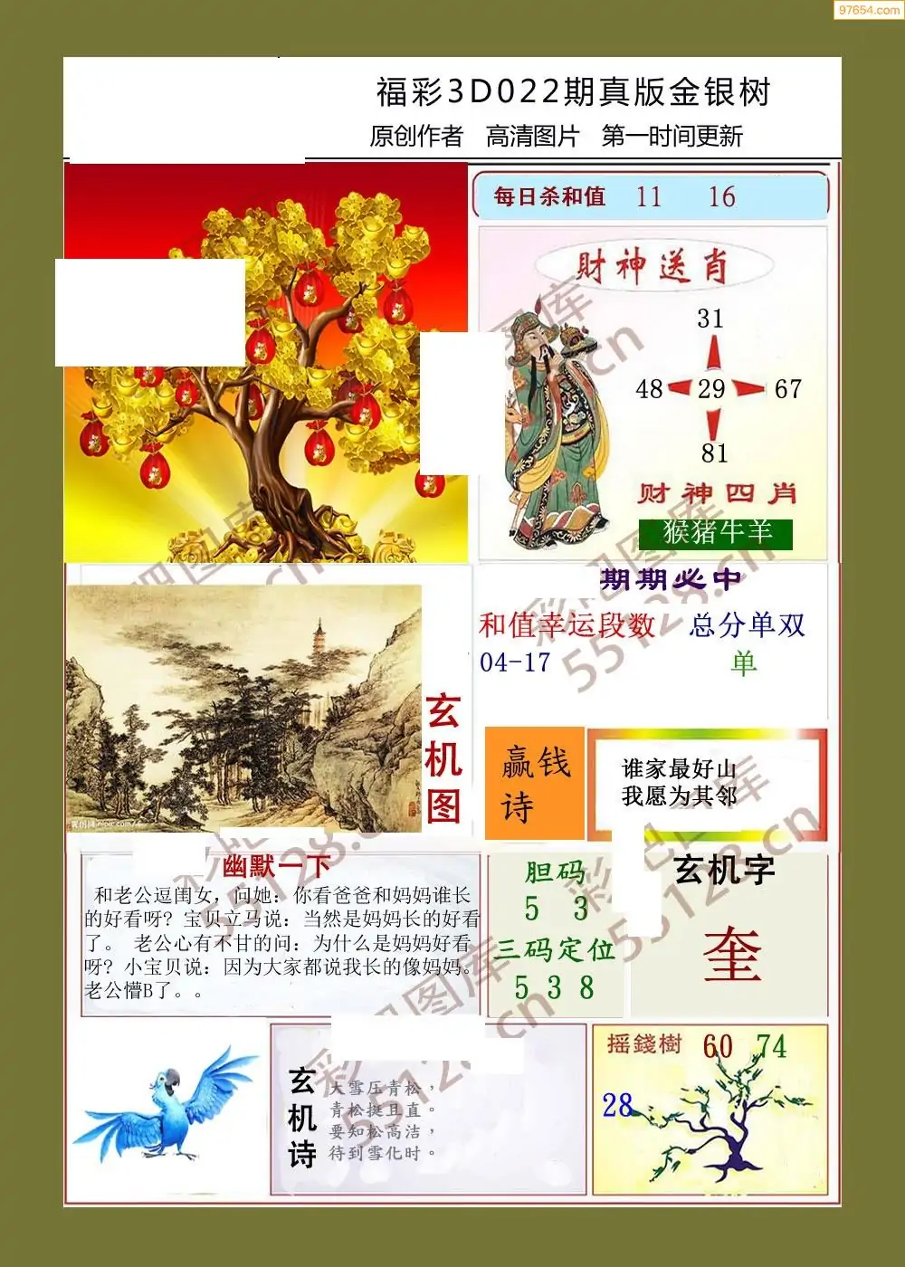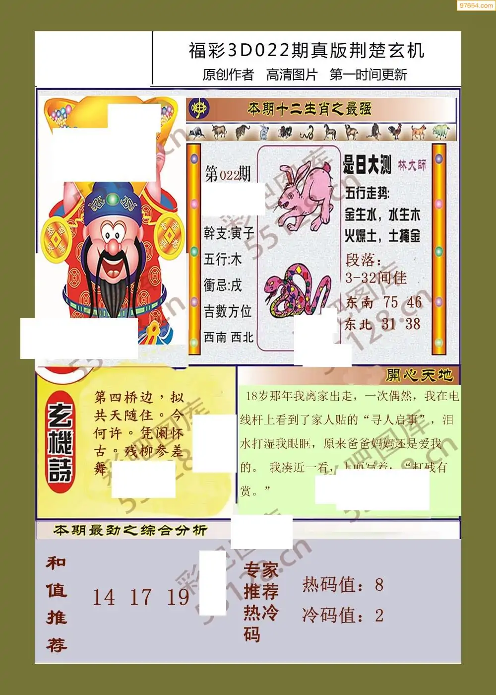 福彩3D022期天牛彩吧套图整合总汇