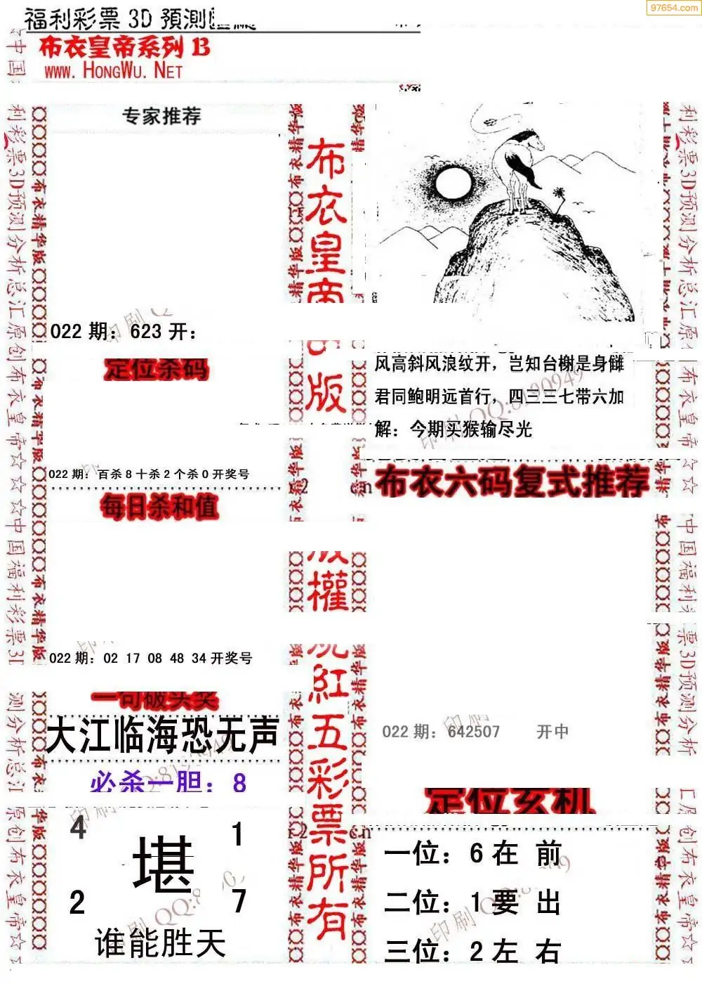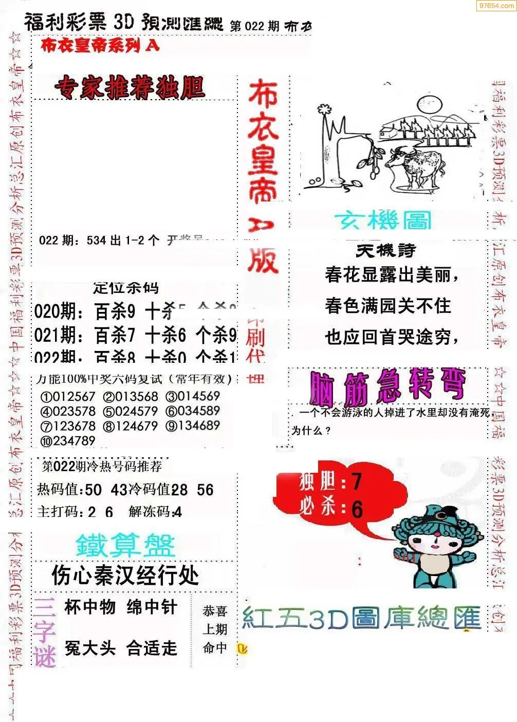 022期3D彩吧图库精华布衣图123456分享
