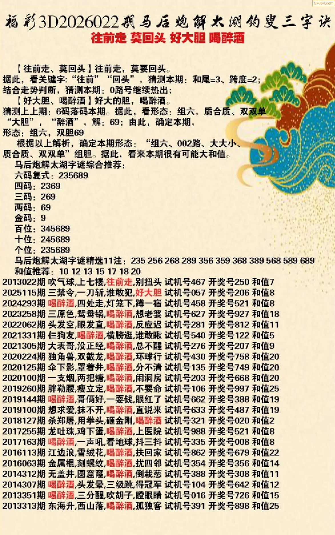 26年022期马后炮解3d太湖钓叟之 喝醉酒