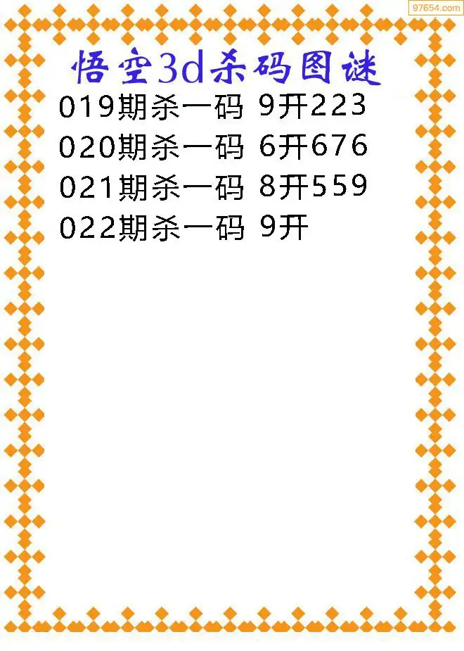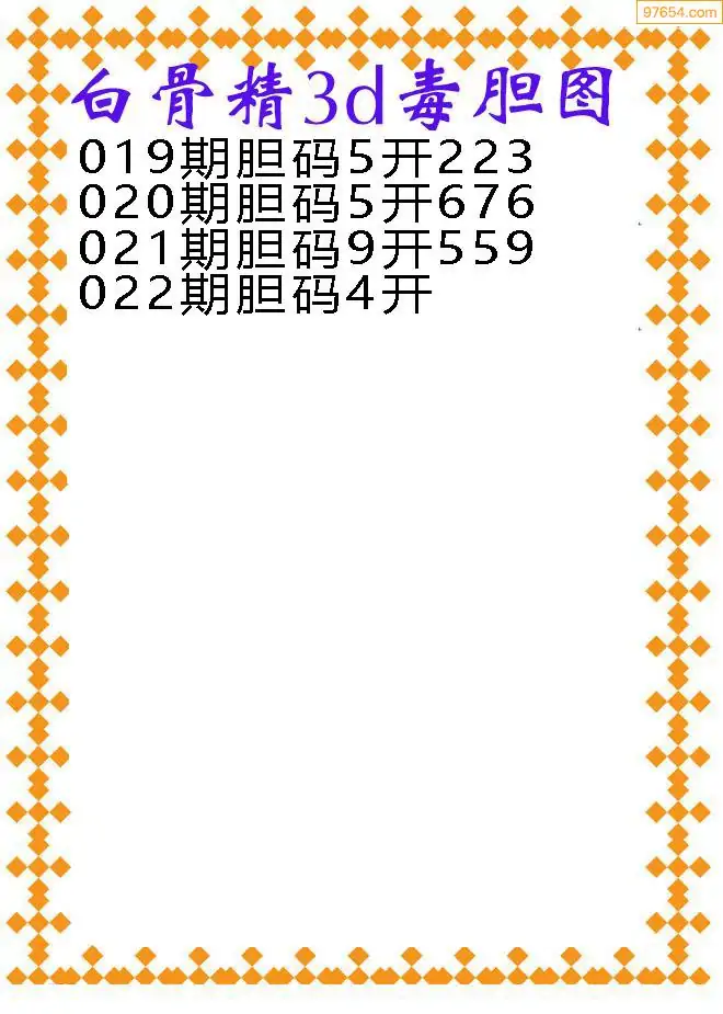 022期97654本站收集胆码出号预测