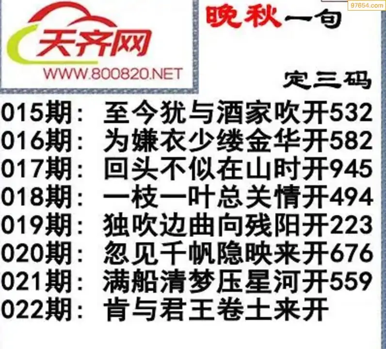 022期3d福彩今日晚秋字谜一句定三码