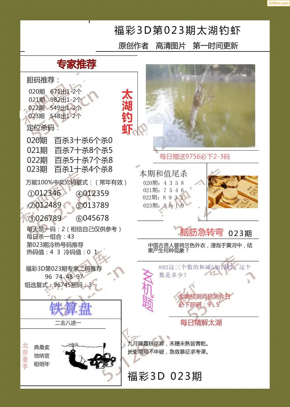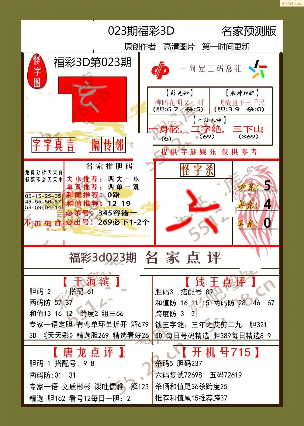 (3)2026022期3D预测总汇全图_福彩3d图谜字谜总汇