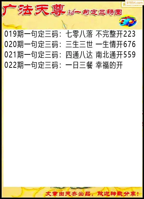 (8)26年022期今日3d各类彩报汇总