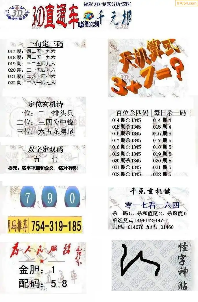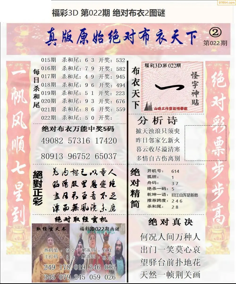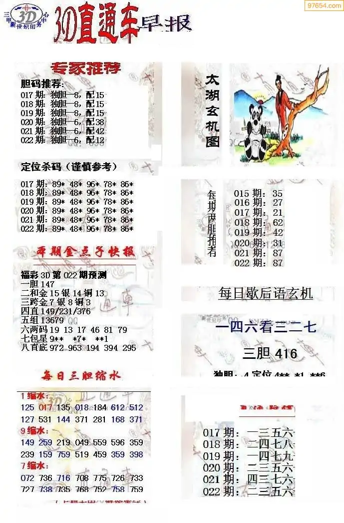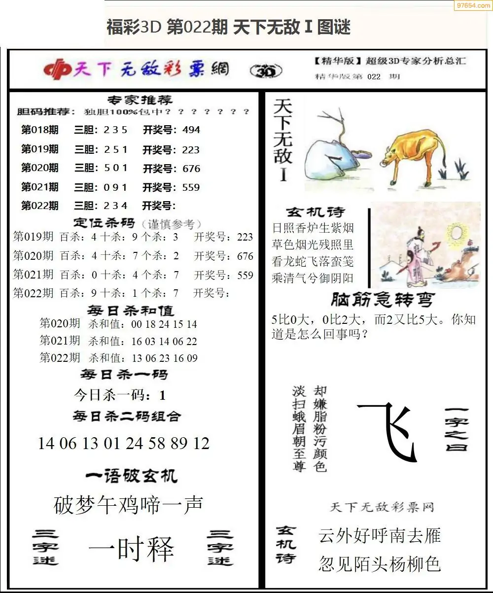 福彩3D022期天牛彩吧套图整合总汇