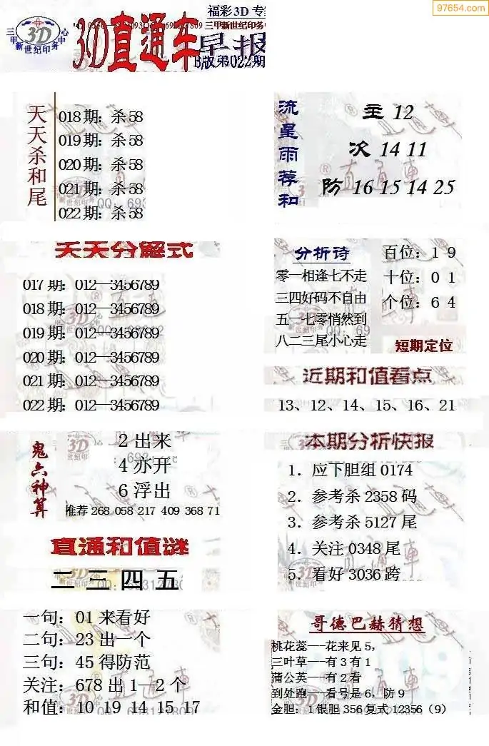 26年022期3D各板块资料整合汇总