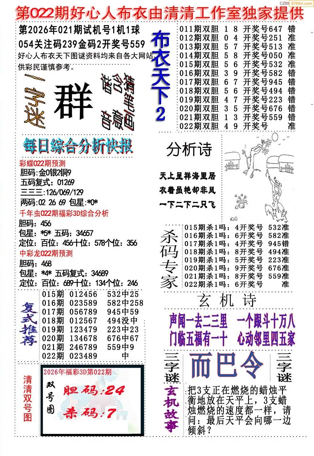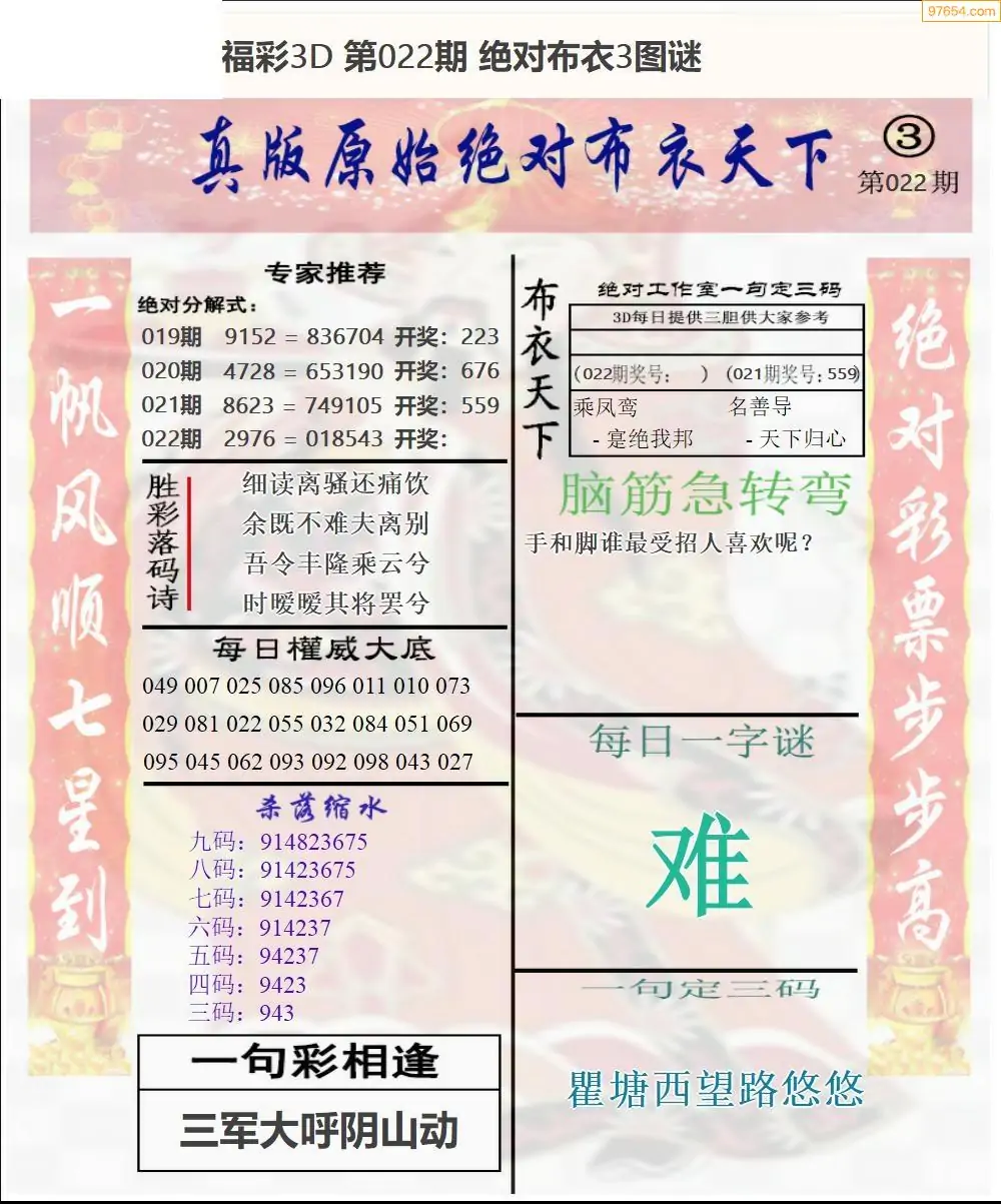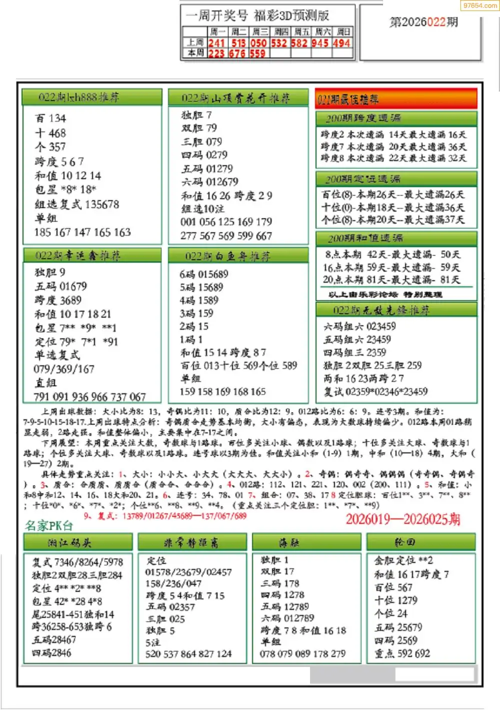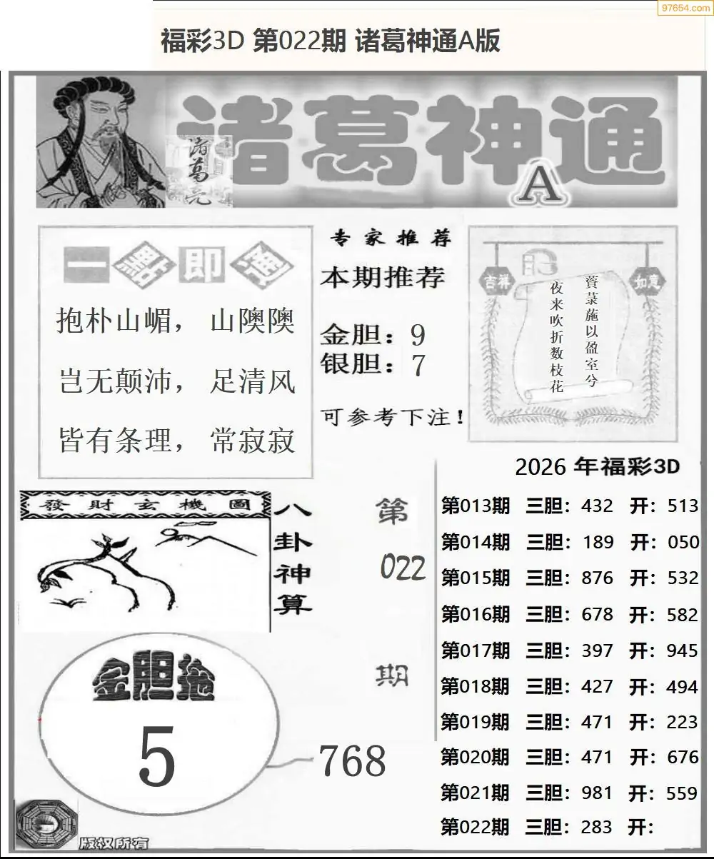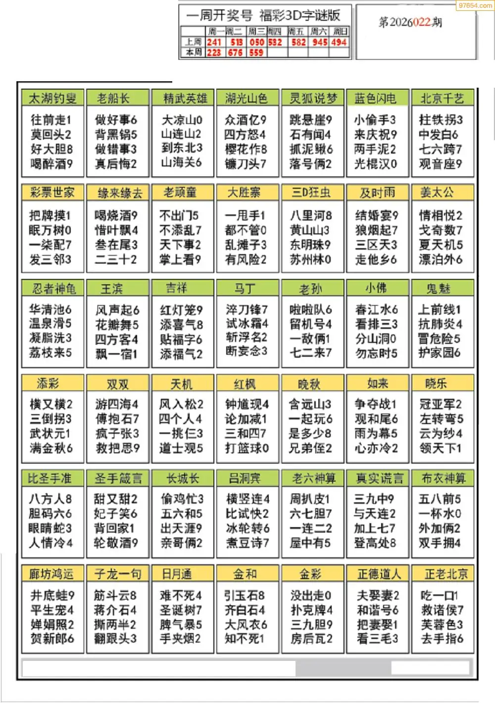 (2)26年022期本期3d图迷汇总_福彩3D图谜总汇图