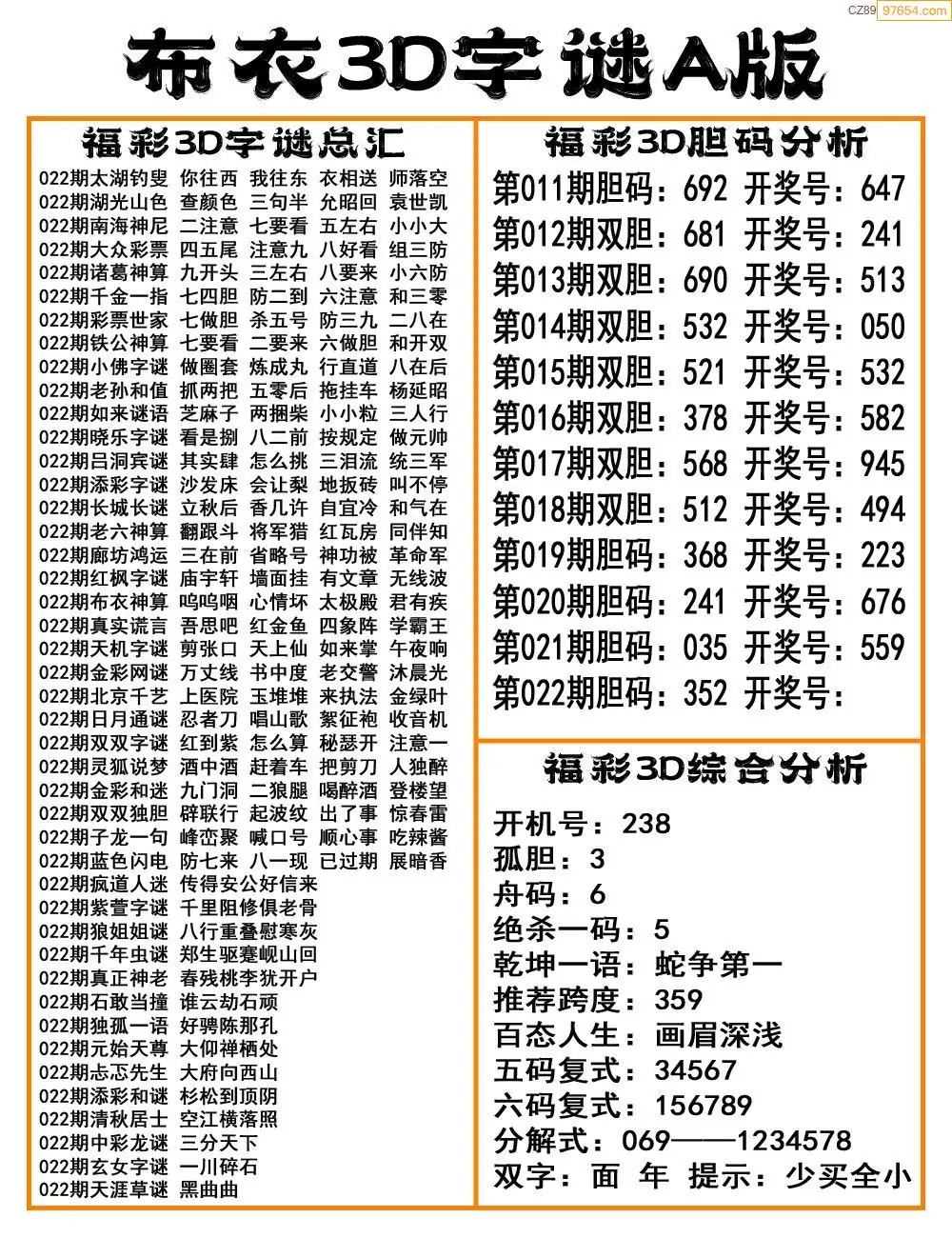 (3)2026022期3D预测总汇全图_福彩3d图谜字谜总汇