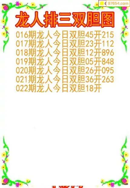 26022期龙人排列3双胆图