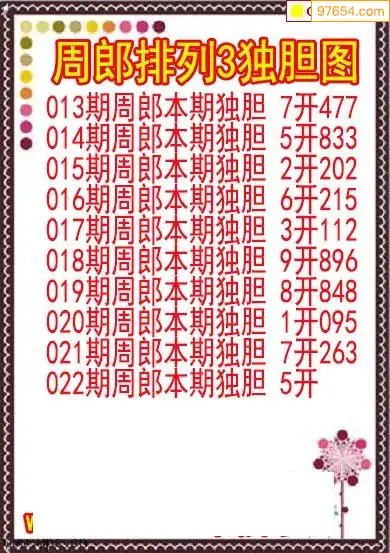 26022期排列3周郎本期独胆图