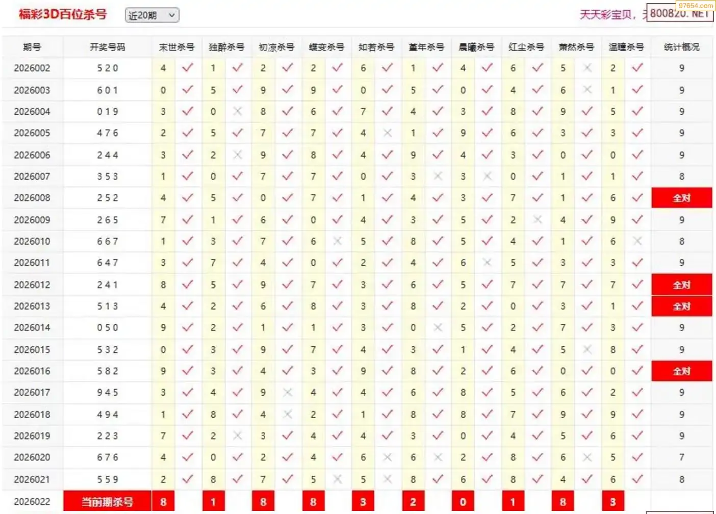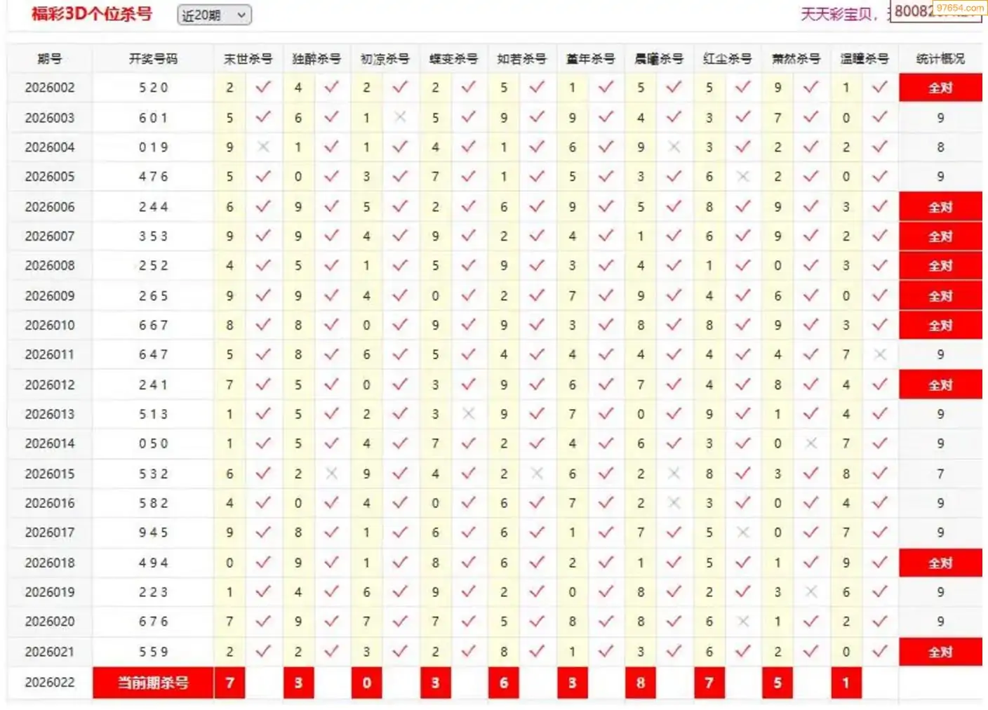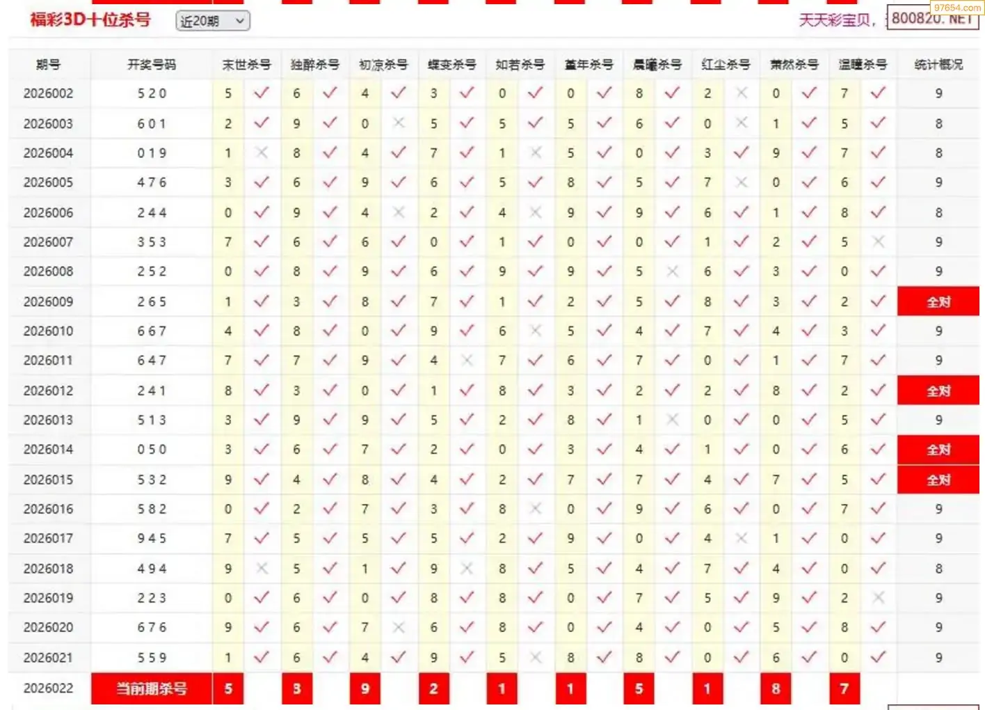 福彩3D26年023期非诚勿扰杀两号 5连中