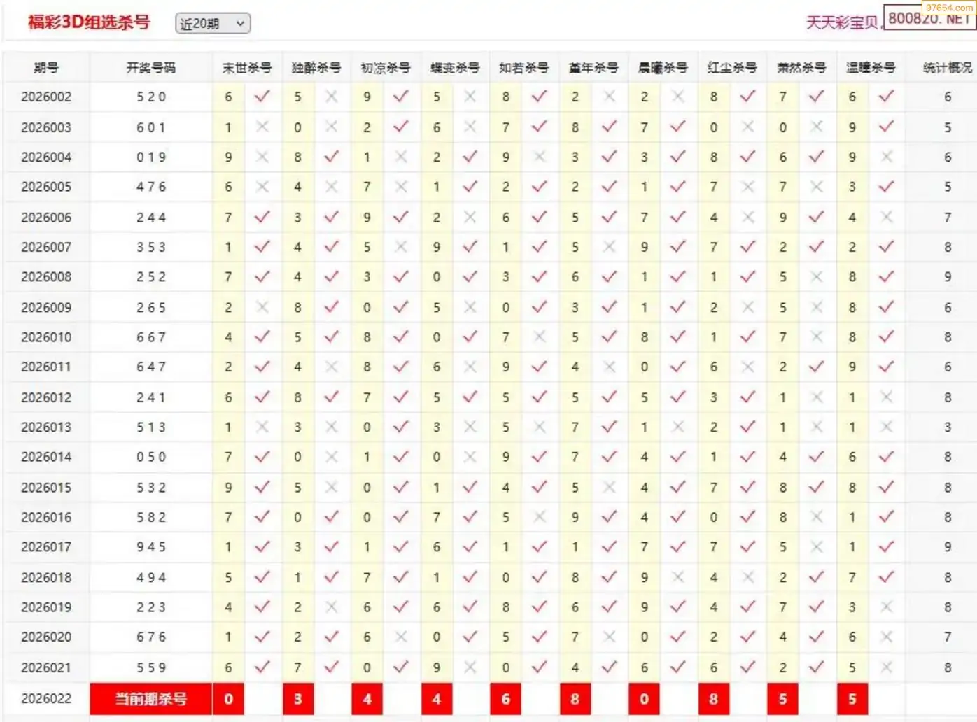 福彩3D26年023期非诚勿扰杀两号 5连中
