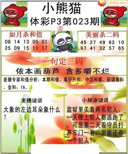 E族图023期体彩p3专家条件分析图谜_体彩图谜打印版