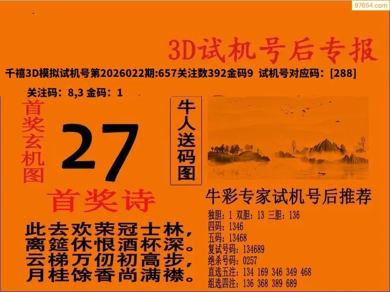 26022期福彩3D试机号后首奖诗