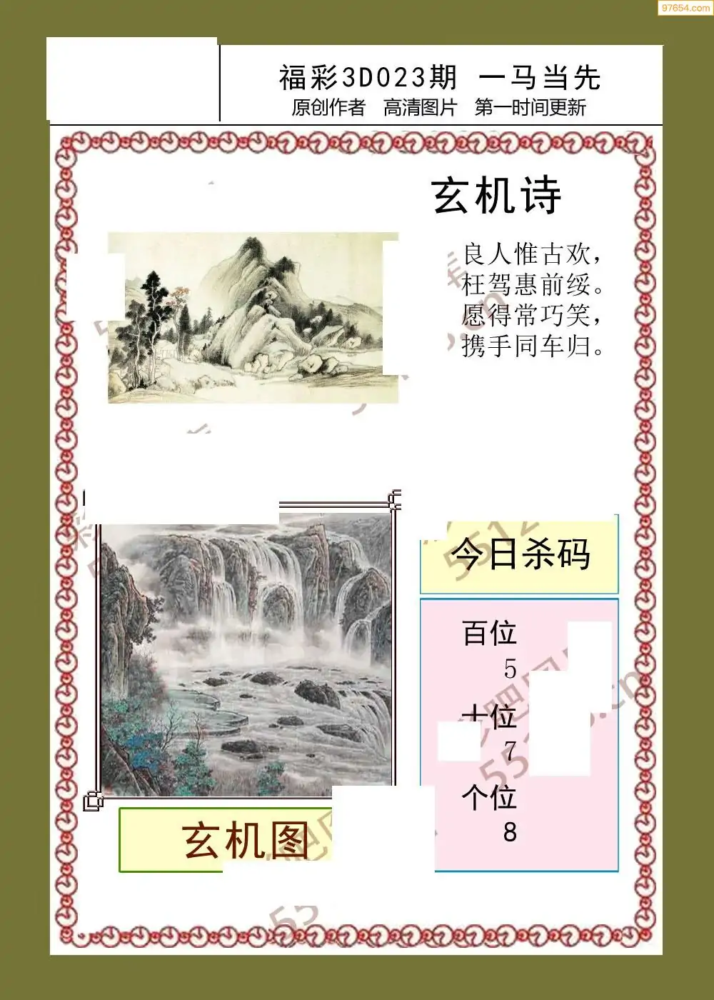 023期鑫马分析+杀手报3d图谜