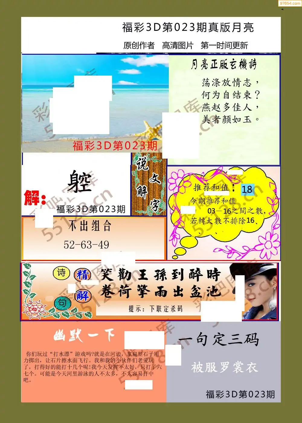 福彩3D26023期蓝仙子一句定三码图谜