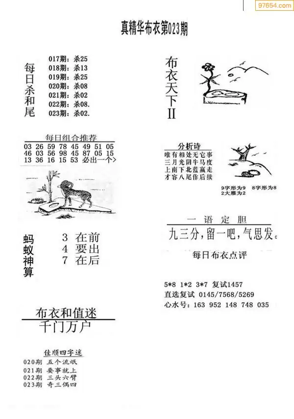 福彩023期3d真精华布衣+布衣早报(转载)
