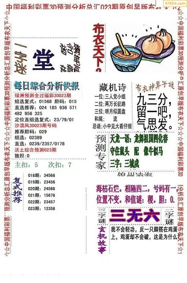 福彩023期3d真精华布衣+布衣早报(转载)