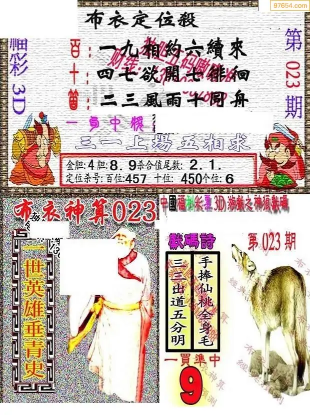023期3D彩吧图库精华布衣图123456分享