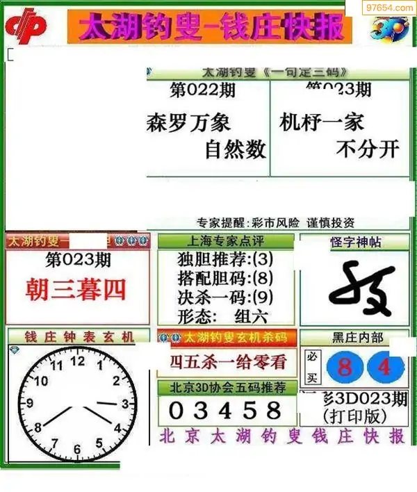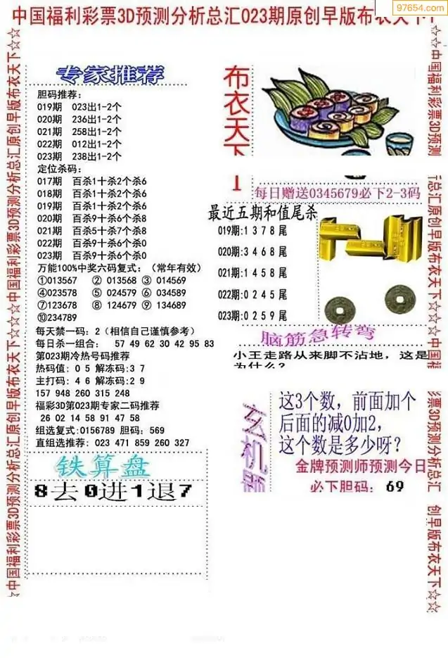 023期3D牛彩预测报+彩吧字谜报