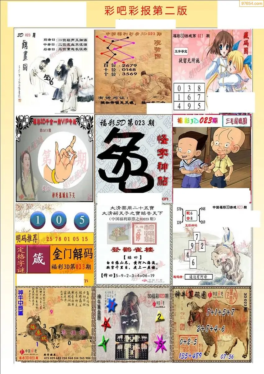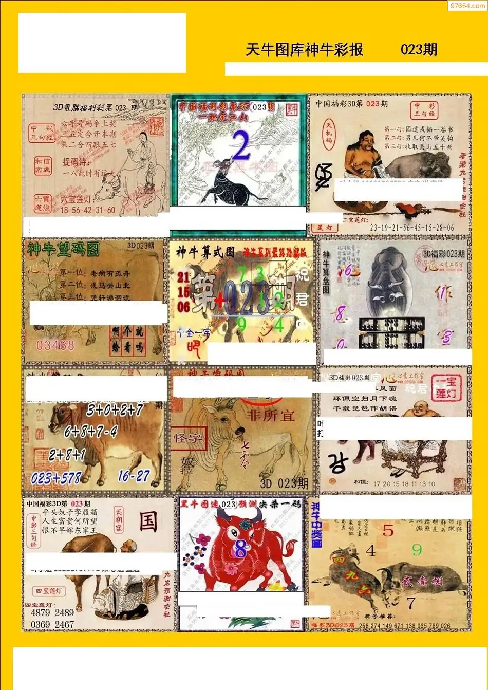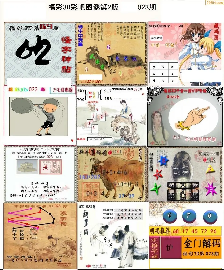 023期3D牛彩预测报+彩吧字谜报