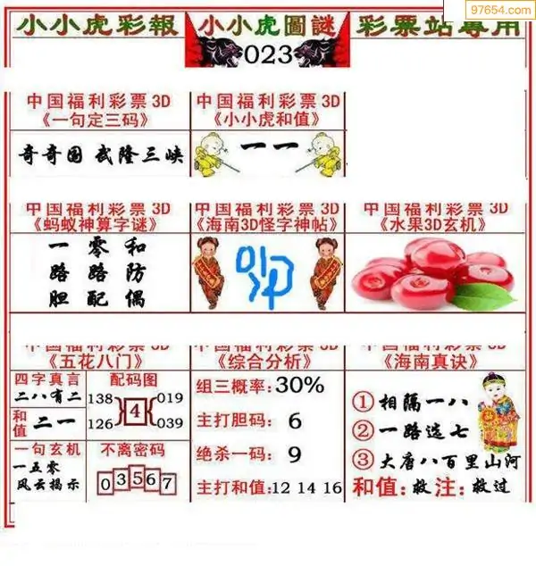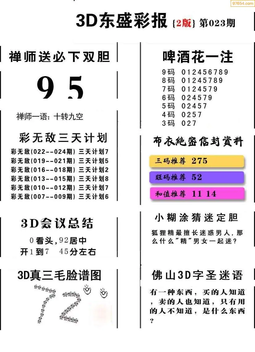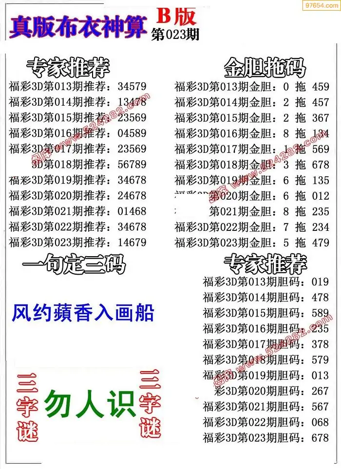 (3)2026023期3D预测总汇全图_福彩3d图谜字谜总汇