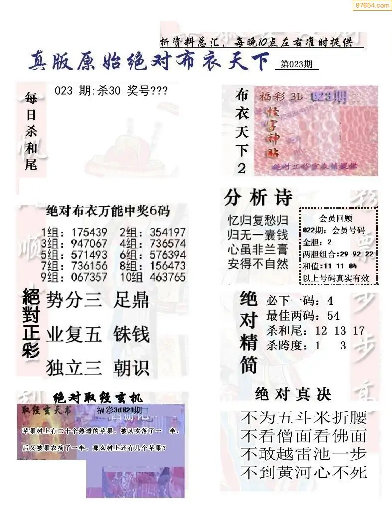 (2)26年023期本期3d图迷汇总_福彩3D图谜总汇图