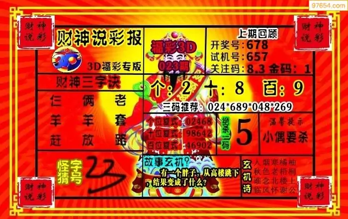 26年023期财神说彩3D综合图(原创)_3d财神到财神送胆