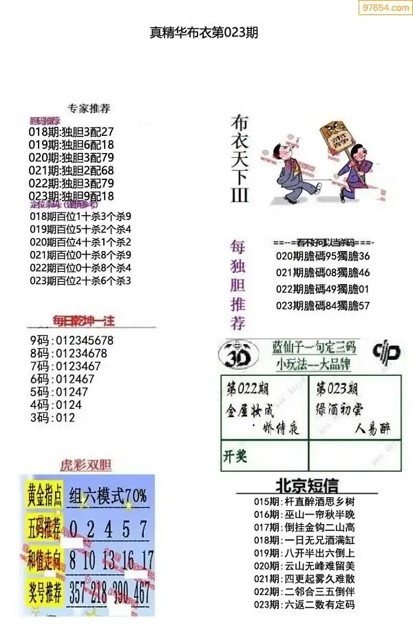 福彩023期3d真精华布衣+布衣早报(转载)