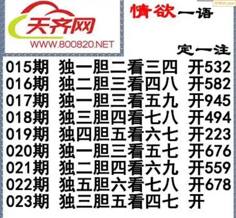 福彩3d26年023期字谜传说一句定三码