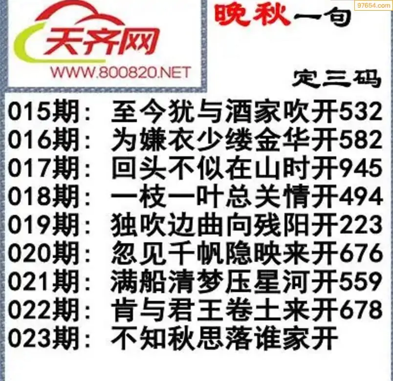 023期3D晚秋(和值)谜:雨水前阳 D:和少大寒