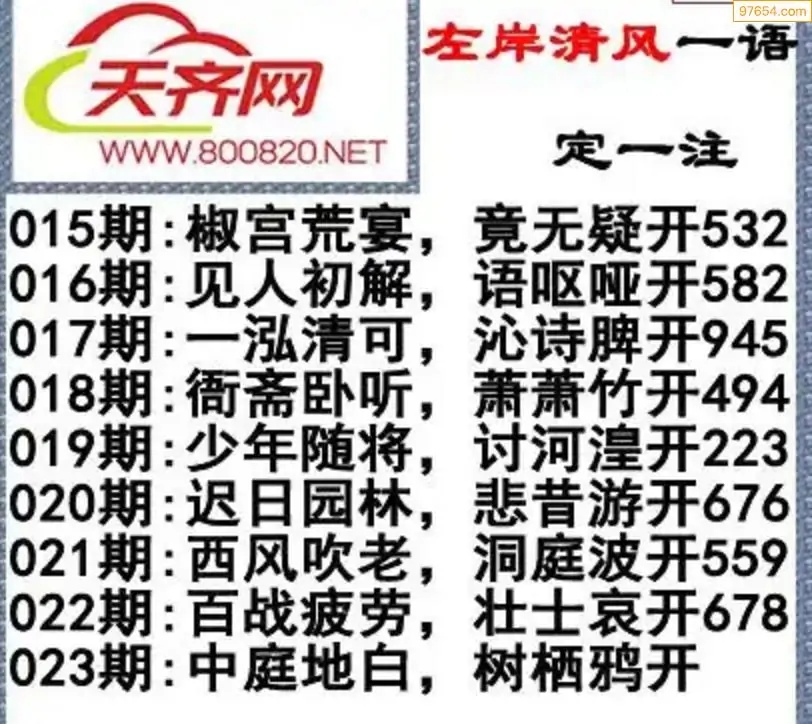 福彩3d左岸清风26年023期一语定一注