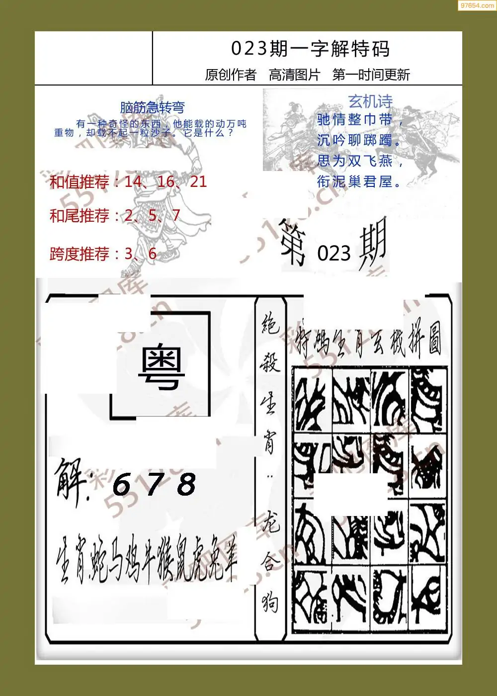 (5)26年023期福彩字谜图谜总汇